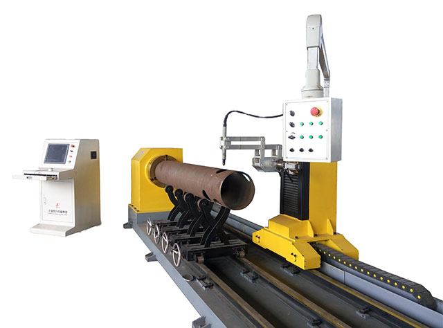 YC-XGX系列數(shù)控相貫線切割機(相貫線坡口切割機)是一種對鋼管端部結(jié)合處作自動計算和切斷的設(shè)備。該機器能廣泛應(yīng)用于造船、建筑、石化、機械、冶金等行業(yè)的管道結(jié)構(gòu)件的切割加工。操作工人不須編程、只需輸入相互配合的管子的半徑、相交角度等參數(shù),機器就能自動切割出管子的相貫線、相貫孔、以及焊接坡口,不再需要人工打磨。